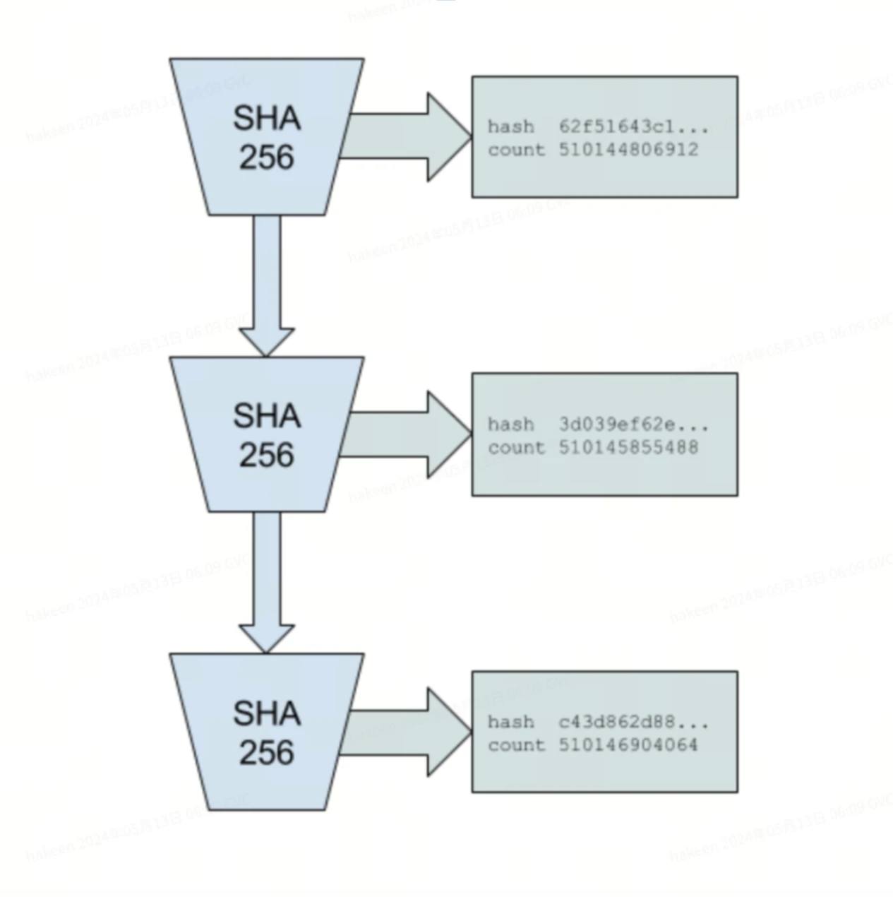 在 Solana 的 POH 序列中,通过应用 sha 256 算法就能确保整个序列的完整性,也就确定了其中交易的完整性。举个例子,如果我们将交易打包成一个区块,生成对应的 sha 256 hash 值,那么这个区块内的交易就被确定,任何变动都会导致 hash 值的更改,之后这个区块 hash 作为将作为下一个 sha 256 函数的 X 的一部分,再添加下一个区块的 hash,那么上一个区块以及下一个区块就都被确定下来,任何变动都会导致新 Y 的不同。