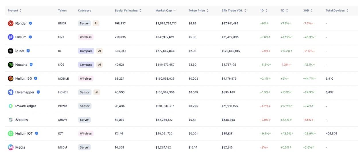 目前在 Solana 的 DePin 市场上,Render 是有实际业务的当之无愧的龙头。伴随着 solana 以实际应用为中心的发展战略,其也在这轮复苏中,抓住了 Depin 的叙事之风。在上半年,大量新的 Depin 项目搭建在 Solana 之上,其中就包括 io.net、Nosana、Shadow 等。