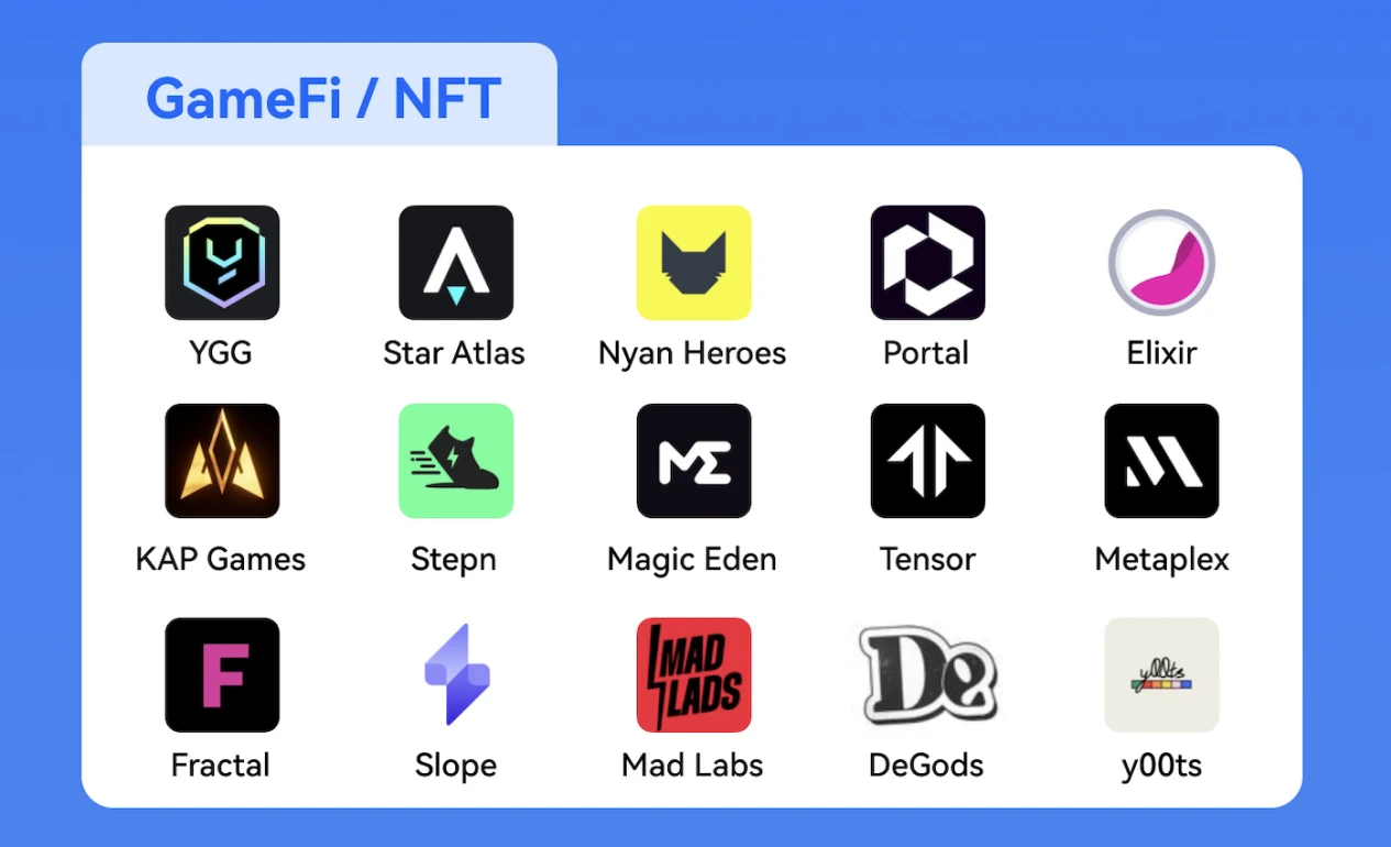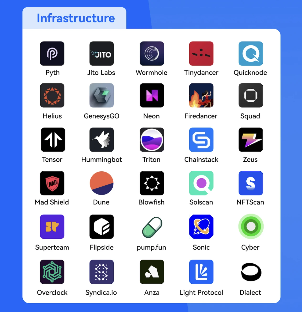 在基础设施的构建上,主要的龙头是预言机 Pyth 以及跨链桥 Wormhole,也包括一些针对性的解决方案大众可能了解较少,比如: