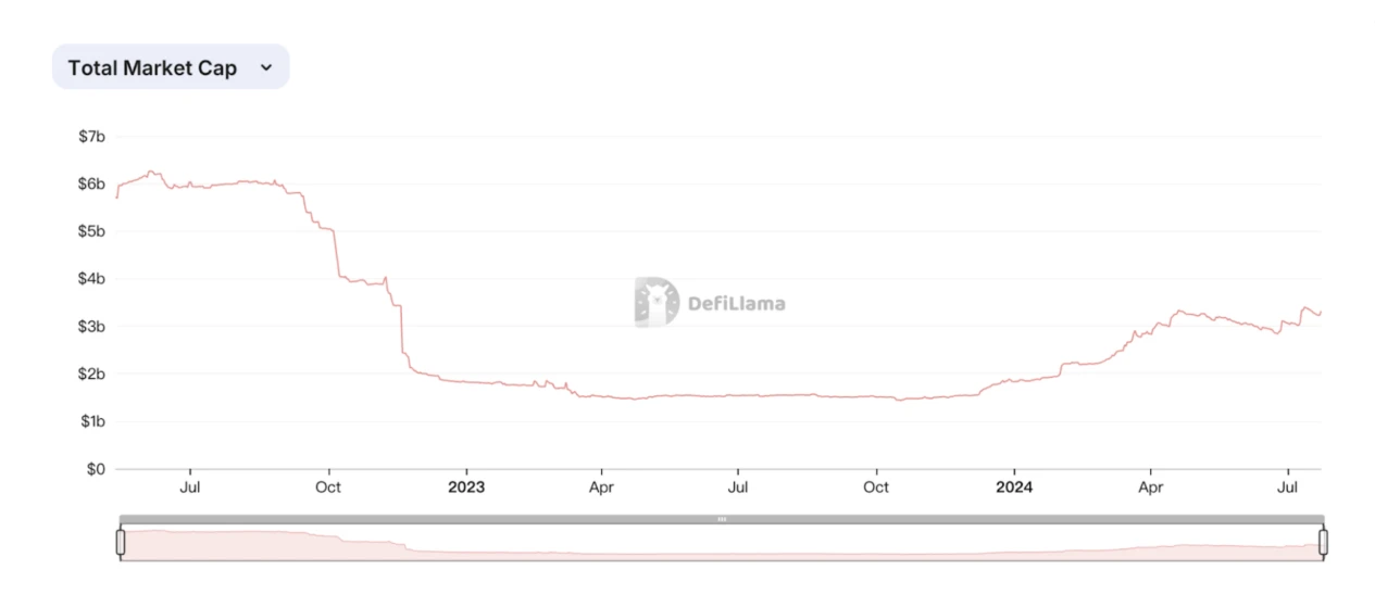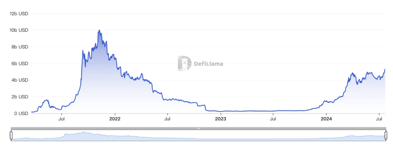 Solana 在 Defi 领域的 TVL 也进展显著,其 TVL 已经创下历史新高,并且与其它公链相比也有一大段距离,但是值得注意的是 Base 也处于高速成长的阶段。