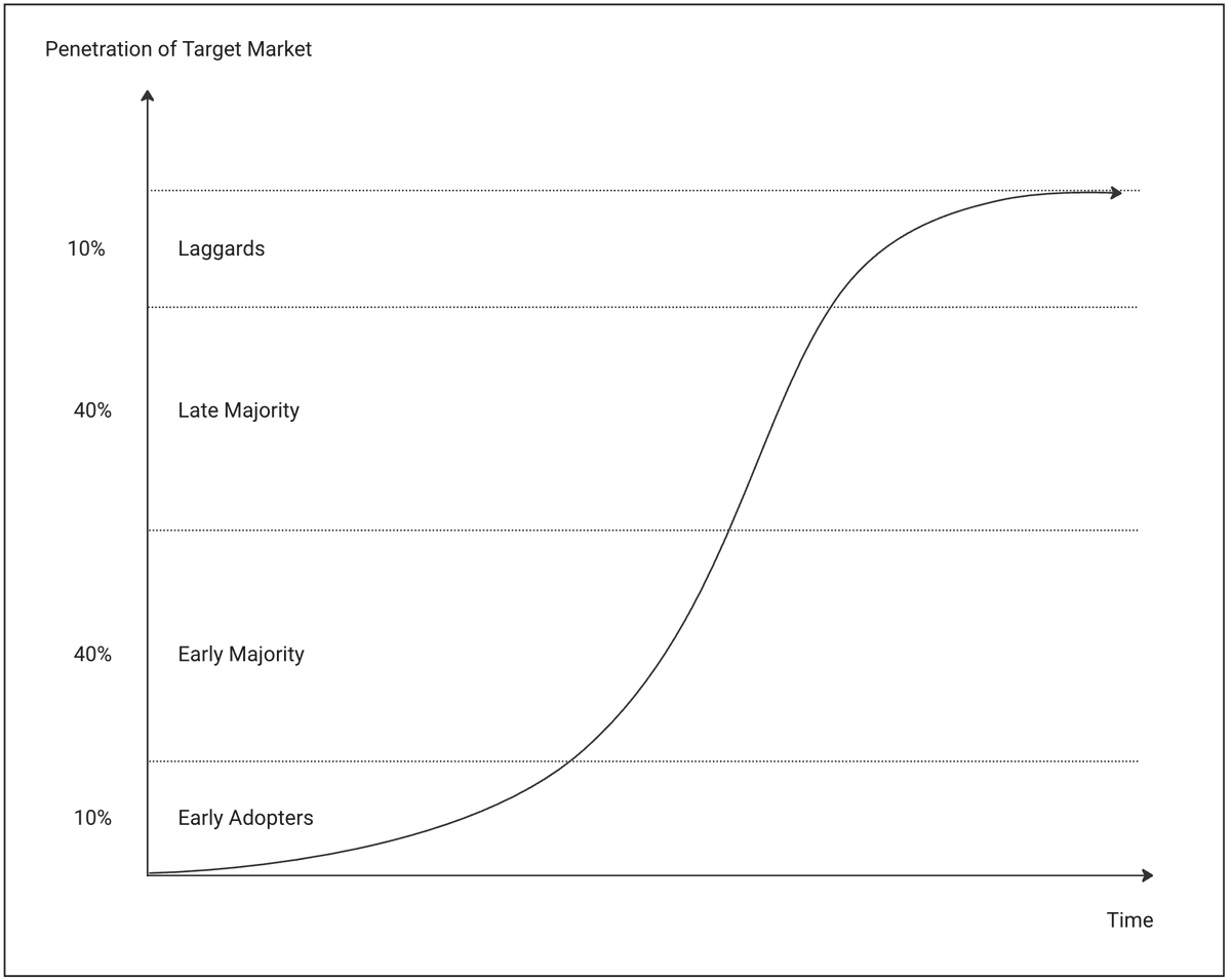 一旦一些有影响力的国家采用比特币,其他国家将会效仿,以避免被甩在后面——这时会产生跟风效应。这种效应是由采用的回报以及不采用的风险驱动的。此时,比特币采用周期进入了 s 曲线的最陡部分。