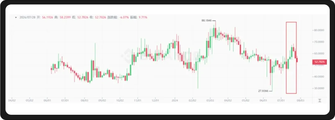 总体来看,整个 7 月份的市场几乎都在由情绪主导。或许加密市场目前缺乏牛市的新叙事,外加与美股走势的脱钩,整体处在一个较为混沌的时期,因而更容易受到情绪的左右。