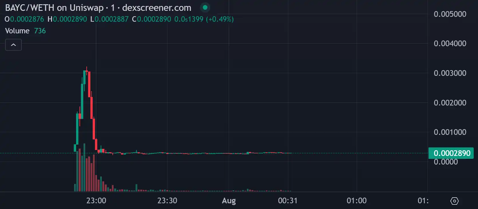 $BAYC 的价格在开盘 5 分钟暴涨 10 倍,然后被 0xSun 发现其合约具有「图币转换」功能后快速送走。
