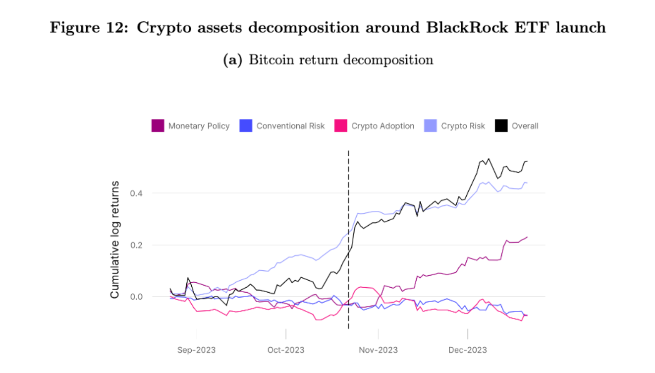 随后,比特币价格的上涨受到传统风险溢价下降和宽松货币政策的支持,但有一部分上涨无法用传统因素解释,反映出显著的加密需求冲击。