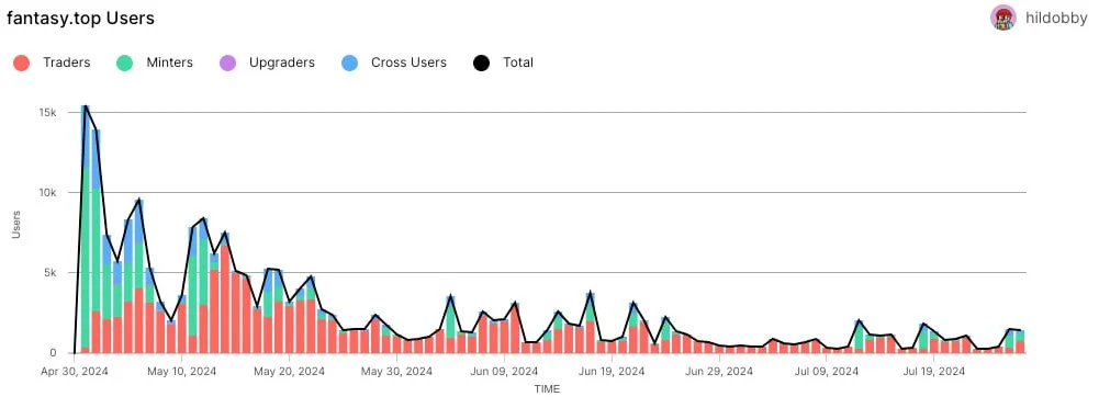 FantasyTop 走上了类似的道路。它在 2024 年 4 月以五位数的日活跃用户数强劲开局,但现在徘徊在 2, 000 到 3, 000 名日活跃用户之间。