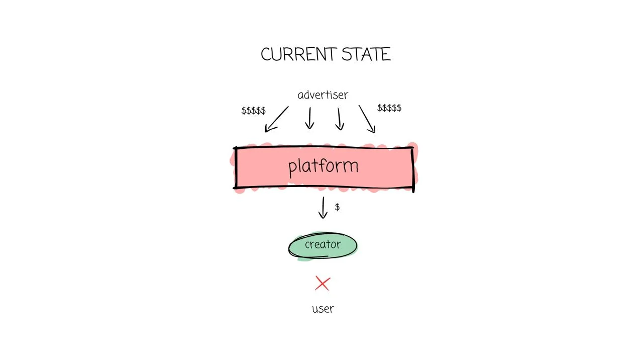 通过打破平台运营商作为注意力供应者(消费者和创作者)与注意力寻求者(广告商)之间的中介角色的垄断,我们设想一个更公平的价值分配未来。收入应按比例分配给那些赚取它的人,或分配给目标创作者的社区。