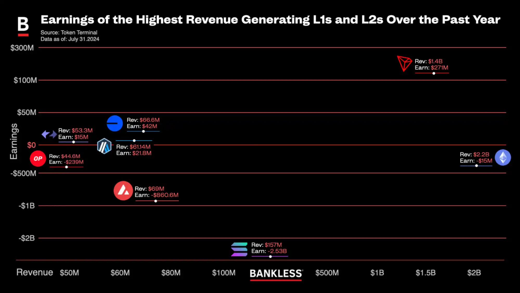 公链收入排行榜:以太坊年入22亿美元,Optimism深陷赤字