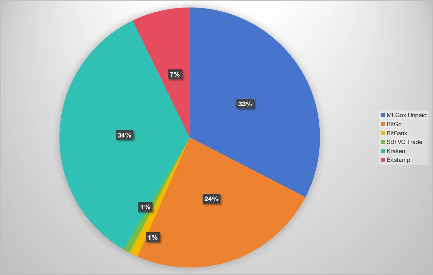 Mt.Gox 一共通过 5 家交易所执行赔付,分别是 Bitbank、SBI VC Trade、Kraken、Bitstamp、BitGo,由于在 7 月 31 日之前前四家交易所都已经收到来自 Mt.Gox 的比特币,所以在当日收到 33963 枚比特币的地址极有可能属于 BitGo。