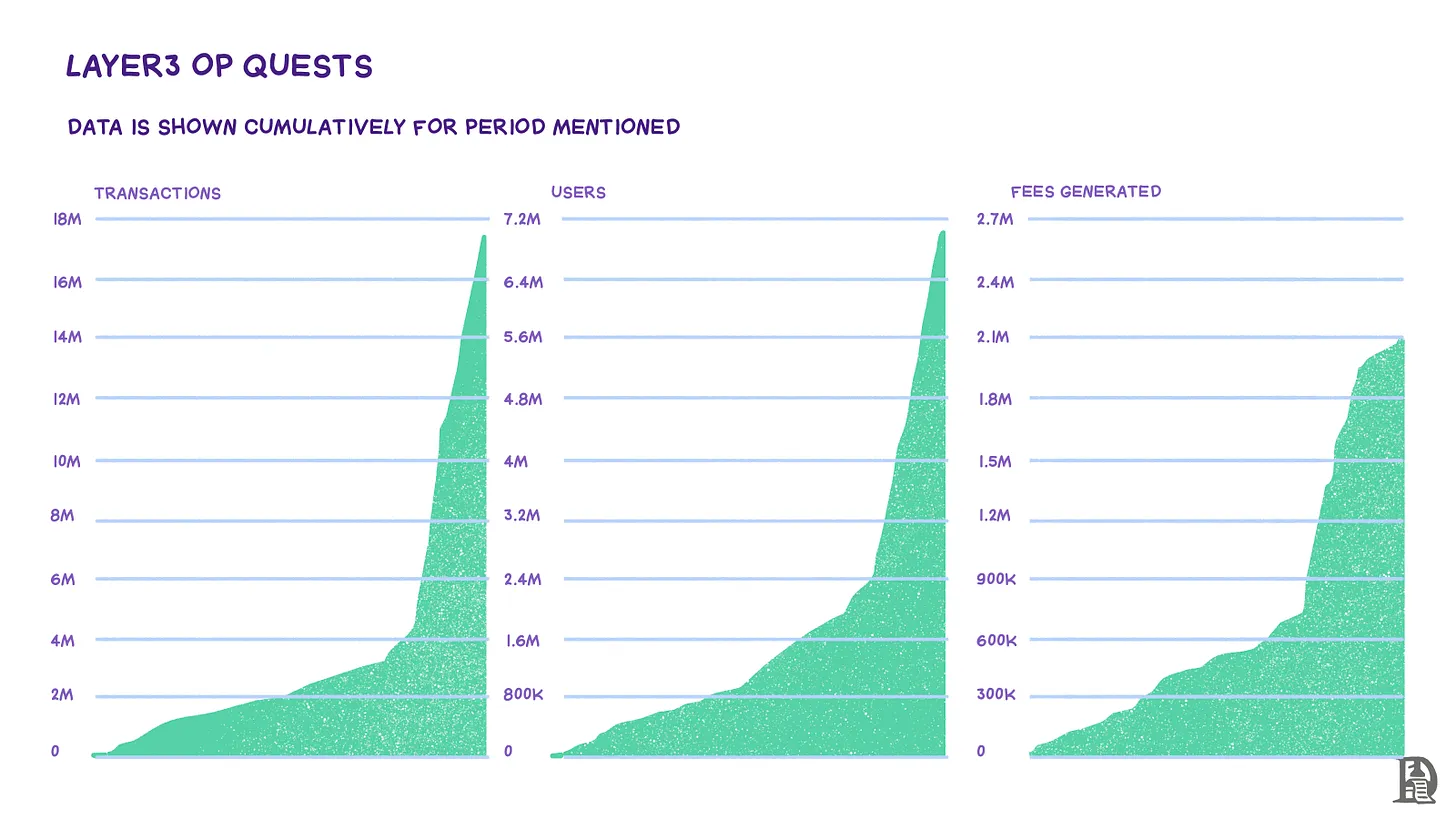 除了拥有自己的数据外,用户还可以通过 Layer3 获得他们所使用协议的所有权。例如,如果用户在 Layer3 上完成 Optimism 激活,他们就能获得 OP。