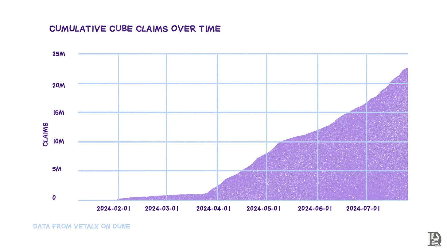 每个 CUBE 都包含自定义元数据,可统一用户的链上会话数据,让用户拥有自己的链上足迹,并帮助协议更好地定位正确用户。这些凭证是可转让的,但由用户永久持有。