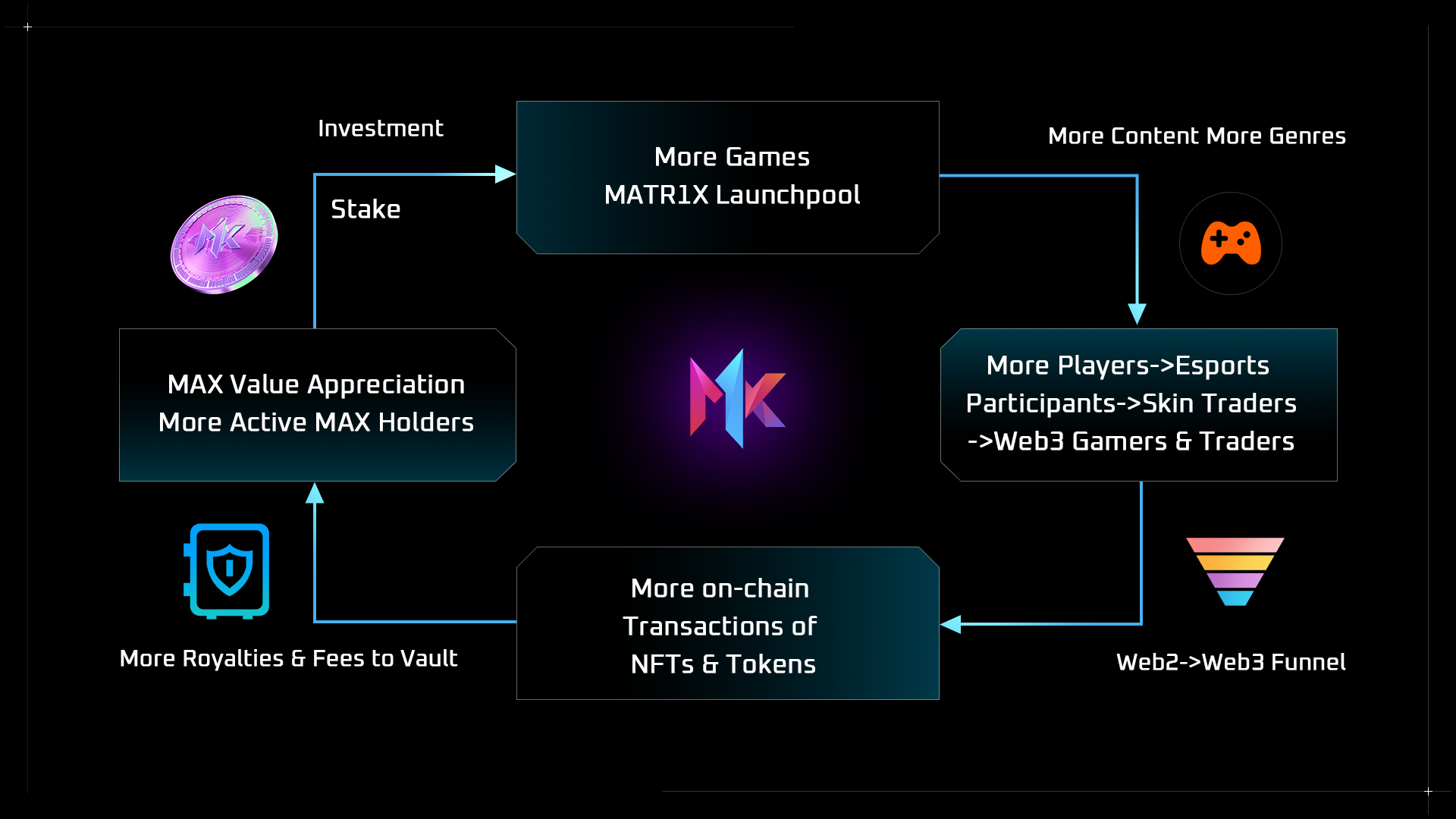 这段时间的 $MAX 的新币挖矿也获得很多关注,可期待 $MAX 上币后的表现。$MAX 代币作为治理工具,提供丰富的参与机会和价值捕获途径。随著平台发展和更多游戏加入,MATR1X 有望在 Web3 游戏领域中攻占重要地位,为用户和投资者带来更多收益,形成正向循环。