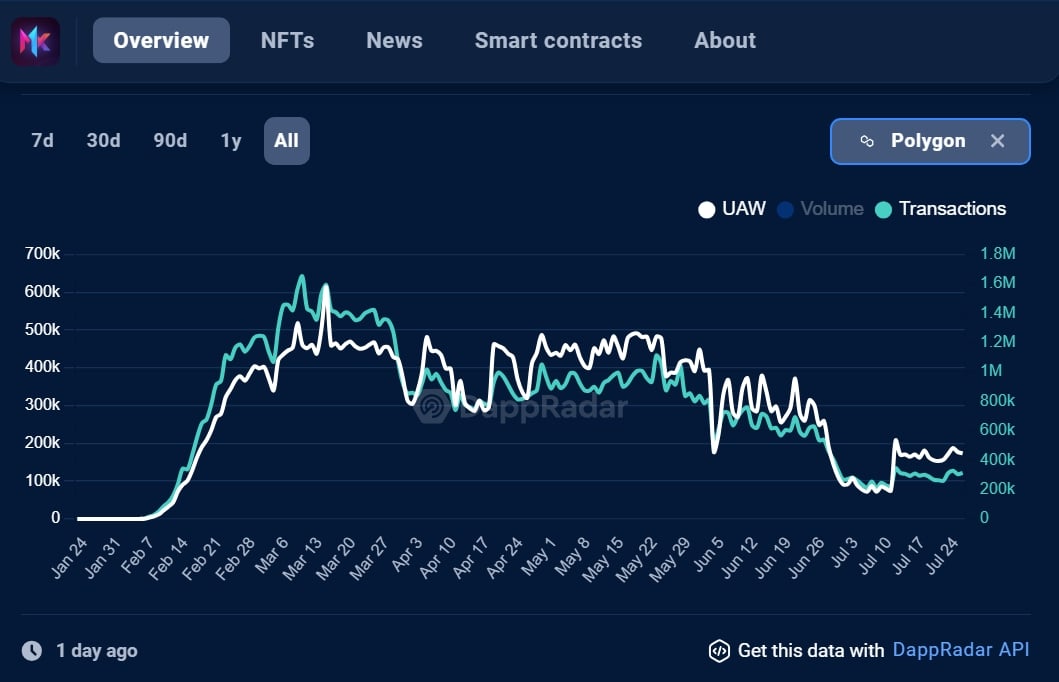 二、 MATR1X 每日活跃钱包仍在 10 万以上