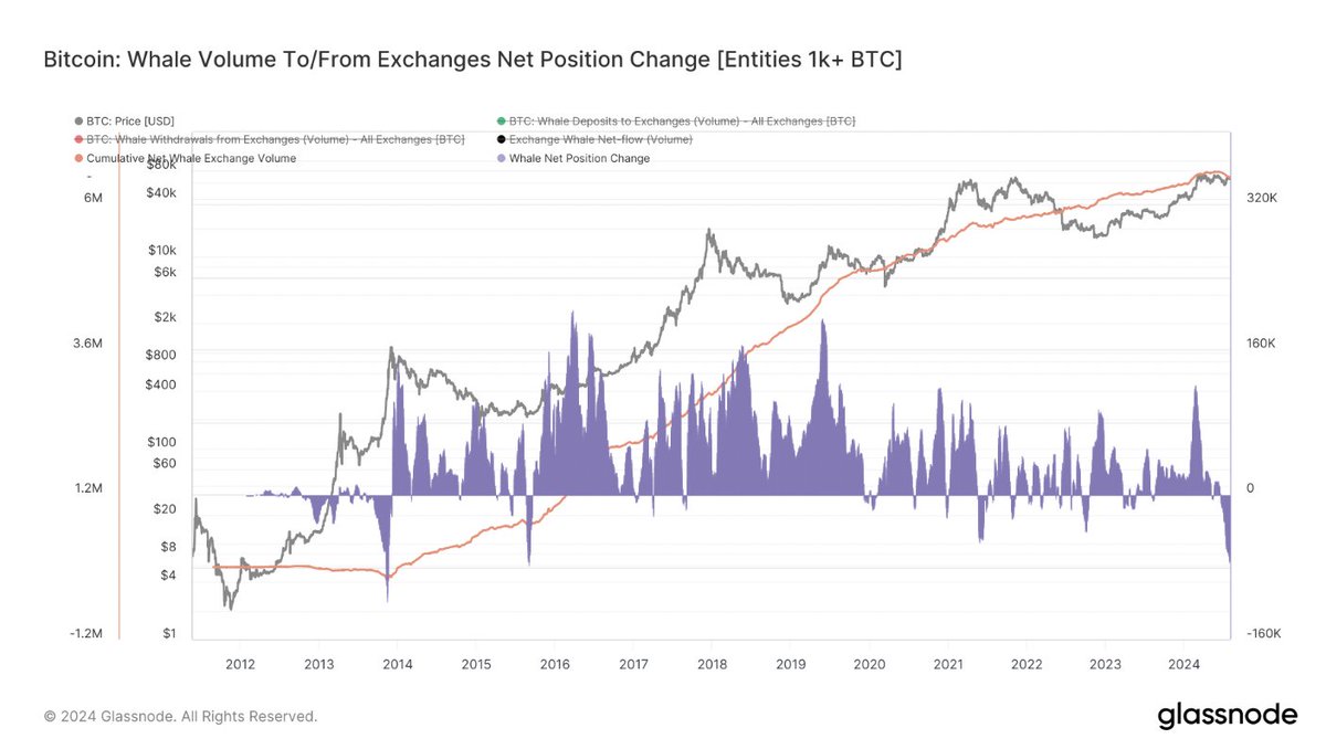 博链财经BroadChain获悉,8月4日,据Cointelegraph,尽管市场持续波动,鲸鱼从交易所提出的 比特币 数量已达9年来的最高水平。