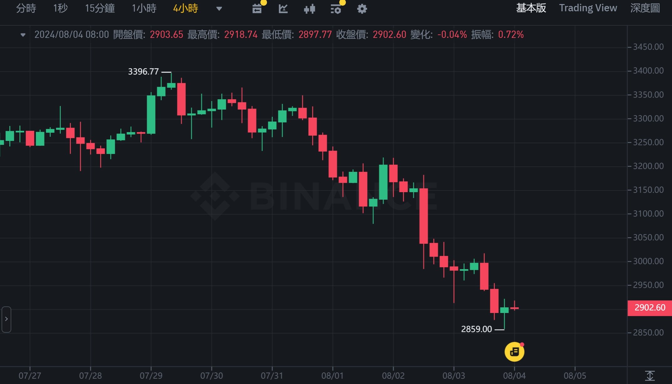 以太坊跌破 2900 美元