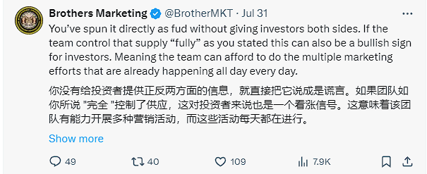 有趣的是,在 Bubblemaps 曝光 NEIRO 代币老鼠仓之后,上述喊单的多个 KOL 也出现在 Bubblemaps 的评论区裡,对 Bubblemaps 进行回击,并表示团队控制代币是看涨讯号。