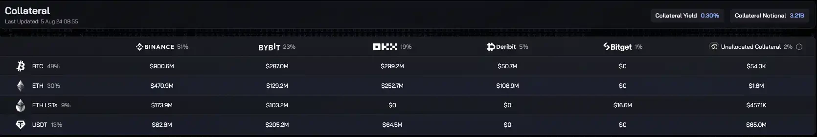 由于以太坊表现不佳,为防止回报进一步下降,Ethena 质押资产已逐步转向比特币。 官方数据 显示,Ethena Labs 平台当前 TVL 为 31.8 亿美元,储备资金为 4650 万美元。抵押物中 48% 为 BTC、 30% 为 ETH、 10% 为 ETH LST、 12% 为 USDT。