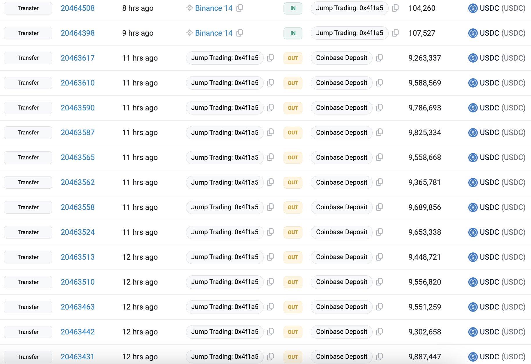 Jump Trading似乎正在大额套现。据Lookonchain最新数据监测,自7月24日开始出售以太坊以来,Jump Trading从币安提现了6.06亿美元的USDC,并向Coinbase存入了4.4亿美元的USDC。这些存入Coinbase的USDC可能会以1:1的比例兑换为美元。