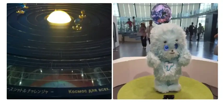 左图:迪拜未来博物馆外观。右图:东京未来馆内的巨大球体,展示着世界主要语言。我喜欢迪拜未来博物馆的哪些地方