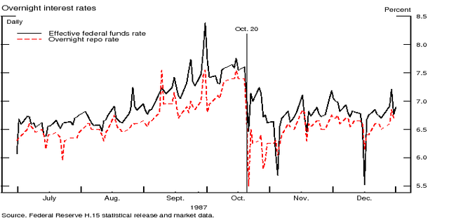 同时,时任美联储总统的格林斯潘宣布「紧急降息 50 个基点」,将联邦基金利率从周一的 7.5% 以上降至周二的 7% 左右。