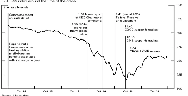 与此同时, 1987 年崩盘前的那个星期五也出现了「三巫日」——股票期权、股指期货和股指期权合约同时到期,这导致了周五交易最后几个小时的严重不稳定,并将动荡延续到周一。