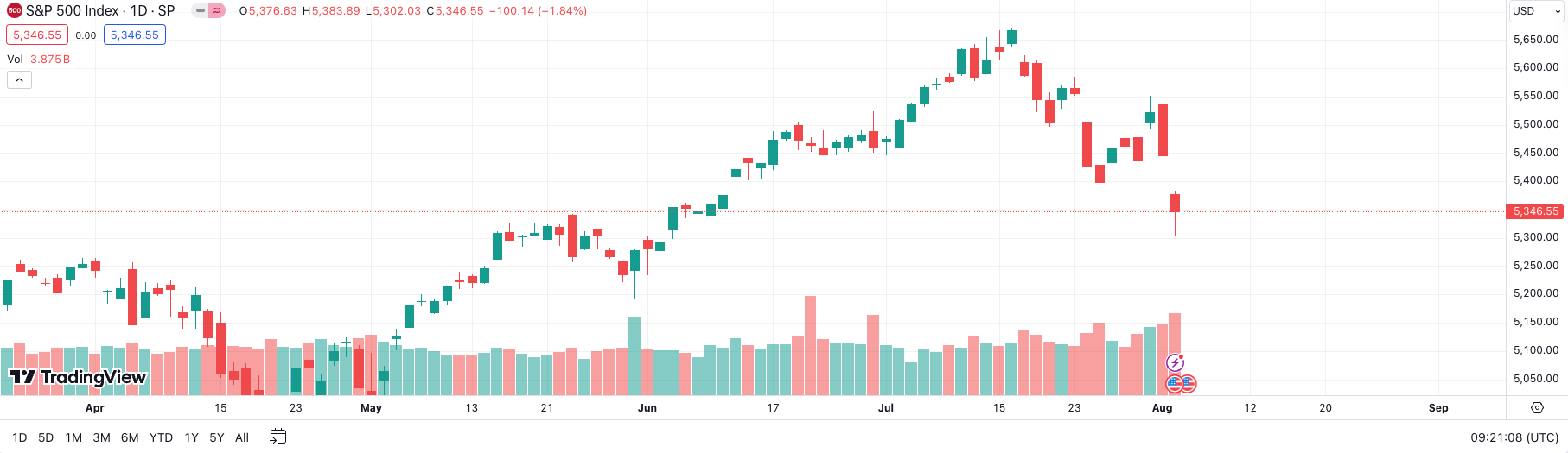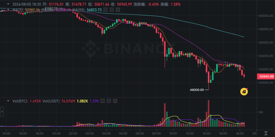 2024年8月5日,注定将被载入史册。在上周末美国7月非农数据远不及预期和失业率意外飙升之下,市场开始担心美国经济将陷入衰退。经过了周末短暂的「相安无事」,周一亚洲金融市场开盘就遭到了血洗,日韩股市相继触发熔断, 比特币 则从今日凌晨4时的接近6万美元一路下跌至4.9万美元。