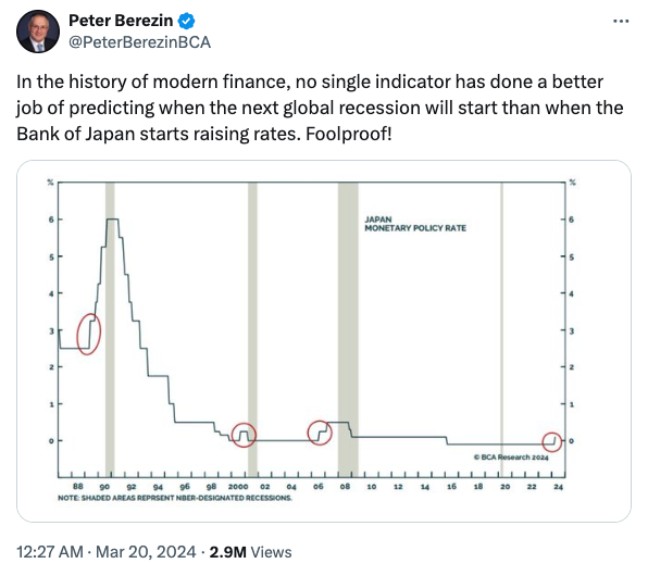 7月31日,在普遍预期日本会继续保持此前的利率时,日本央行超预期加息15个基点,将利率上调至0.15%-0.25%,而这一举动明显增加了市场的恐慌情绪。曾就职于高盛和国际货币基金组织的BCA Research首席全球策略师兼研究总监Peter Berezin早在日本央行3月加息时就表示,「在现代金融史上,没有哪个单一指标比日本央行开始加息时更能预测下一次全球经济衰退何时开始。」
