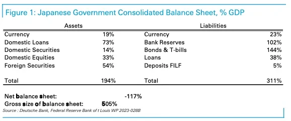 普遍的看法是,日本负债累累。对冲基金经理们一个接一个地赌日本即将崩溃。但那些押注日本崩溃的人总是输。这种交易不是白叫“寡妇制造者”。许多宏观投资者对日本过于悲观,因为他们未能理解日本的公共和私人资产负债表的综合情况。对于相信个人权利的西方投资者来说,这是一个容易犯的心理错误。但在日本,集体至高无上。因此,在西方被视为私有的某些行为主体,在日本只是政府的另一个分支。