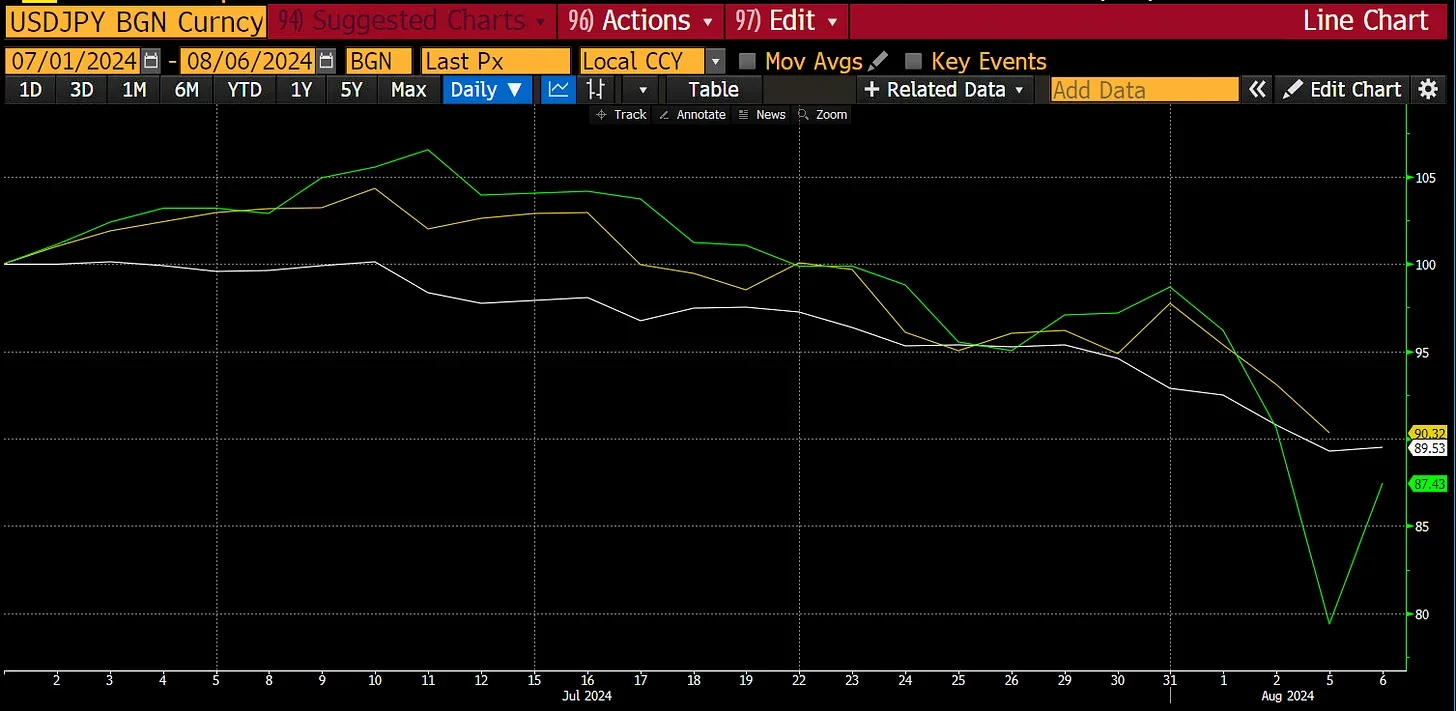 我对日本公司套利交易头寸进行协调救市的假设基于以下信念:哈里斯不会允许她的选举机会因为一些外国人决定退出某些交易而减少,尽管她并不懂这些交易是什么。