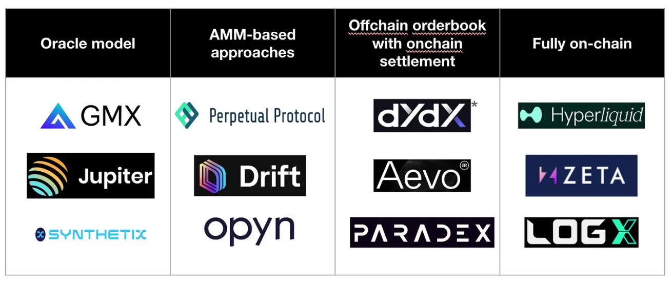 完全链上订单簿代表了维护交易完整性的最佳方式,但由于区块链延迟和吞吐量限制而面临重大挑战。这些问题导致了前置交易和市场操纵等脆弱性。然而,像 Solana 和 Monad 这样的链正在迅速尝试在基础设施层面解决这一挑战。像 Hyperliquid、dYdX v4、Zeta Markets、LogX 和 Kuru Labs 等项目也在推动高性能的完全链上系统,无论是利用现有链还是创建自己的应用链。