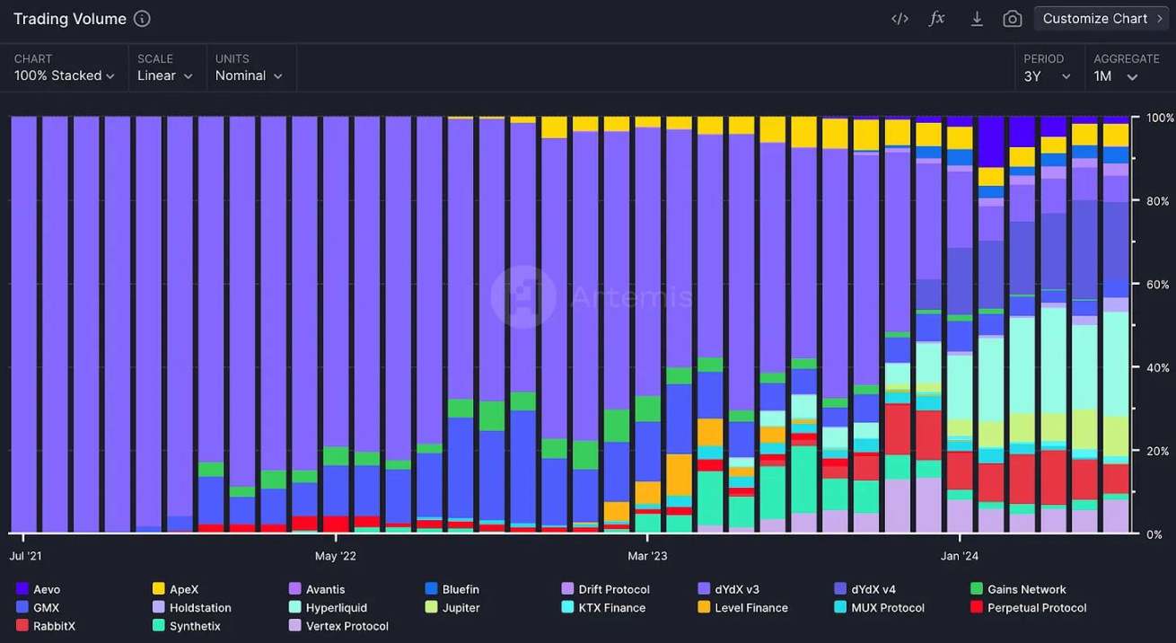 来源:永续 DEX 市场份额 - Artemis