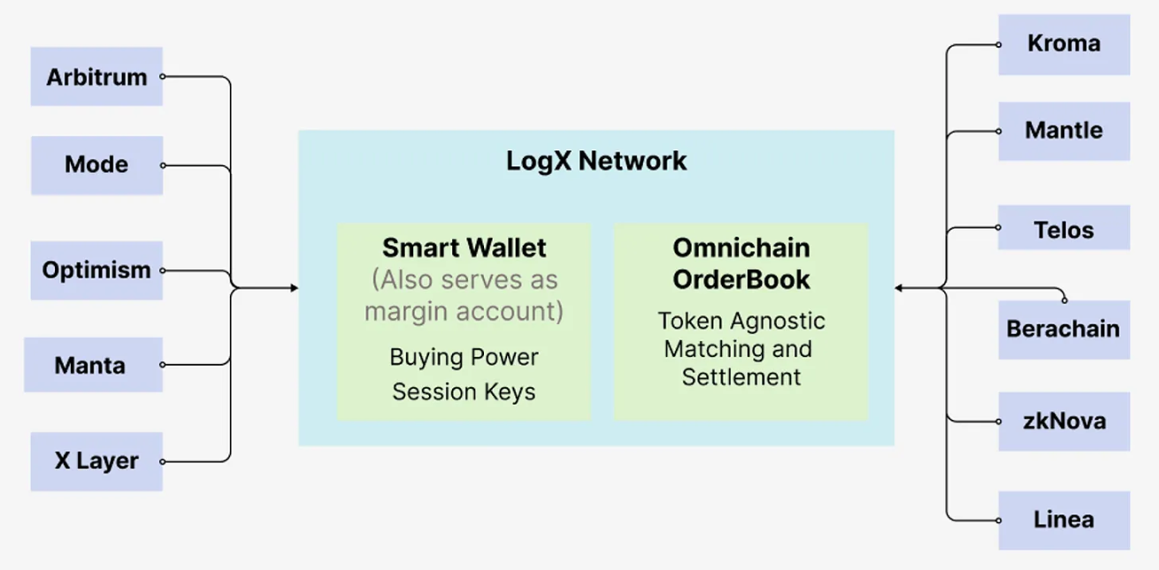 另一个有趣的方法是由 Orderly Network 和 LogX Network 等项目进行的跨链流动性获取。这些网络允许在任何链上创建前端,以交易永续合约并利用所有市场的流动性。通过结合链上的本地流动性、跨其他链的聚合流动性以及创建离散资产、市场中立(DAMN)AMM 池,LogX 可以在市场高波动期间维持流动性。这些池使用稳定资产如 USDT、USDC 和 wUSDM,使交易者能够进行基于预言机的永续交易。虽然设计用于交易,这一基础设施也为在其上构建各种应用创造了选择性。