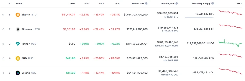 CoinGecko 数据显示,在过去一周,ETH 从 3, 300 美元左右暴跌至 2, 200 美元下方,跌幅超 30% 。ETH 暴跌的其他因素还包括市场杠杆清算压力增加以及 Jump Trading 大量出售 ETH 的消息。