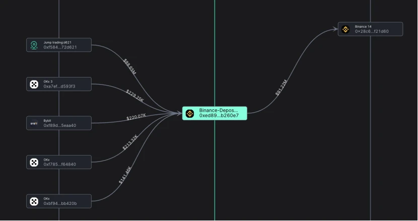 【注:据链上分析网站 Spot On Chain 报道, 8 月 5 日,芝加哥交易公司 Jump Trading 的加密钱包将价值超过 4600 万美元的 17, 576 枚 ETH 转移到中心化交易所。《财富》杂志曾于 6 月 20 日报道称,美国商品期货交易委员会 (CFTC) 正在调查 Jump Trading 的加密货币投资活动。自 7 月 25 日以来,该钱包已将近 90, 000 枚 ETH 转移到交易所,市场暴跌之后,该钱包仍持有 37, 600 枚 Lido 协议的 wstETH 和 11, 500 枚 stETH。】