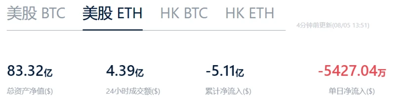 反观 ETH 现货 ETF 净流入数据,由于推出的时间点正好遇到宏观经济环境动荡、美股等风险市场大幅回落的不利局面,因此目前累计净流入-5.11 亿美元,总资产市值规模相比 BTC 也比较小。其中,Grayscale 的 ETHE 占了大部分流出量,价值超过 21 亿美元,而其他 ETF 发行商均处于净流入状态。由于 Grayscales ETHE 仍持有价值超过 59.7 亿美元的 ETH,未来几周有可能会进一步流出。