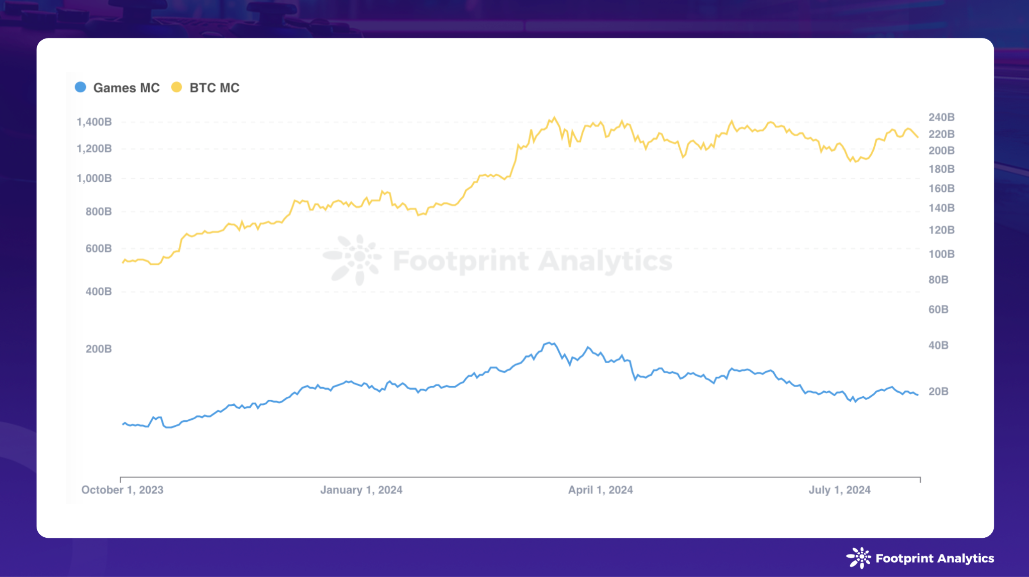在当前市场环境中,区块链游戏的兴趣正逐渐转移,一些叙事如 meme 币、AI、RWA(真实世界资产)以及平台如 Telegram 和 TON 正逐渐受到关注,与比特币并驾齐驱。这使得判断区块链游戏是否正朝着正确的方向或可持续性发展变得困难。我们将在本报告中深入探讨更多数据。