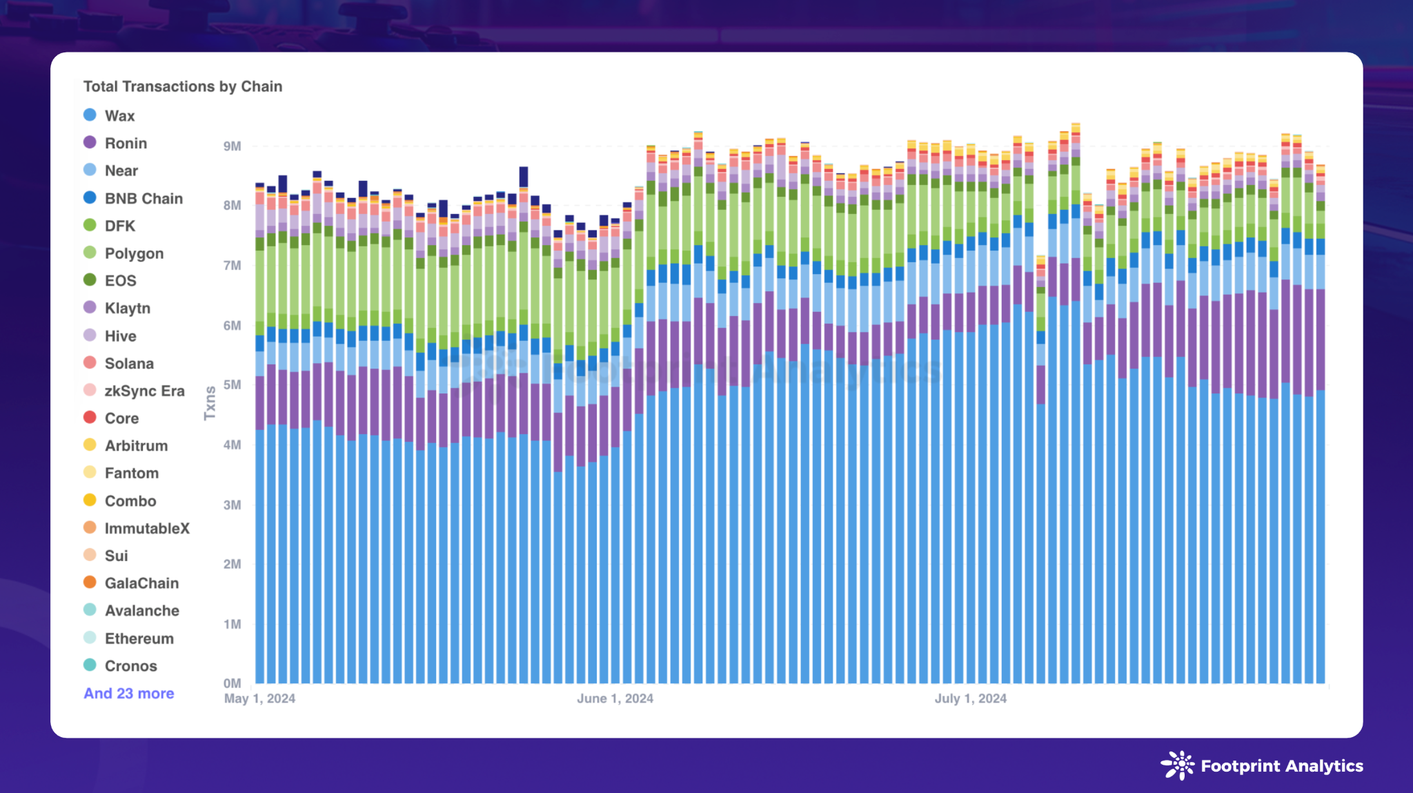 另一方面,Wax、Ronin 和 Near 在日均交易量方面处于领先地位。