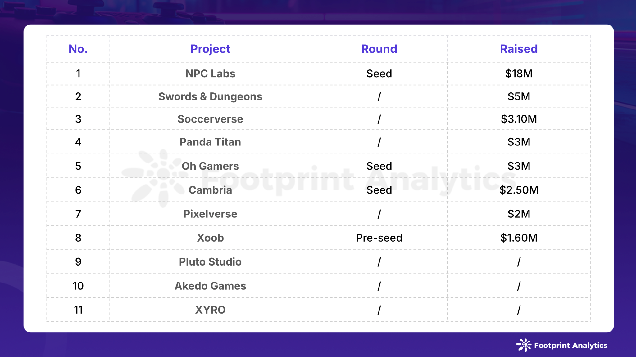 7 月份,Web3 游戏领域通过 11 次融资活动筹集了 3,820 万美元,较 6 月份下降了 11.3%。其中有三项融资活动未公开具体金额。