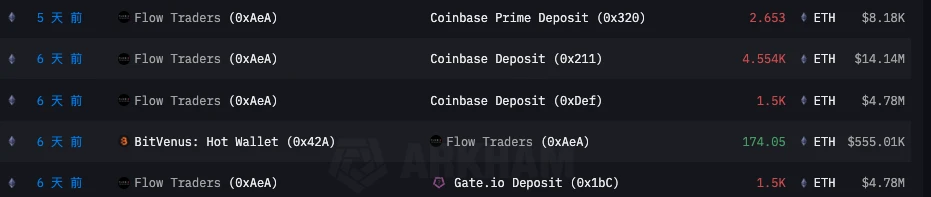 Flow Traders ETH链上公开地址持仓量变化(来源:ARKHAM)