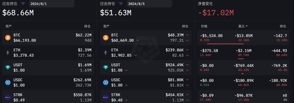 DWF Labs 8月1日至8月5日持仓量变化(数据更新时间为UTC时间每日0点,来源:ARKHAM)