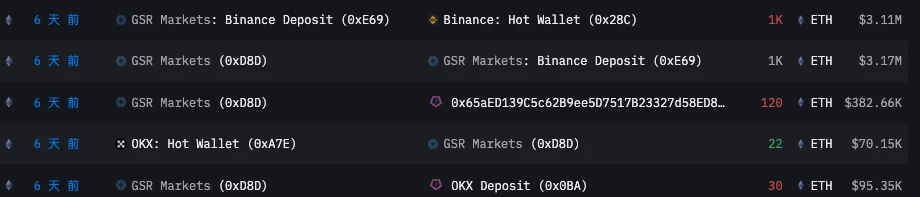 同时对ETH持仓进行单独分析发现,GSR Markets在8月1日至8月2日之间将超1000枚ETH转入了币安等交易所。
