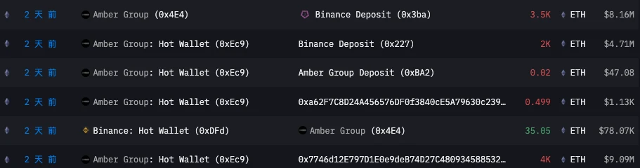Amber Group在8月5日至8月6日将大量ETH转移至交易所