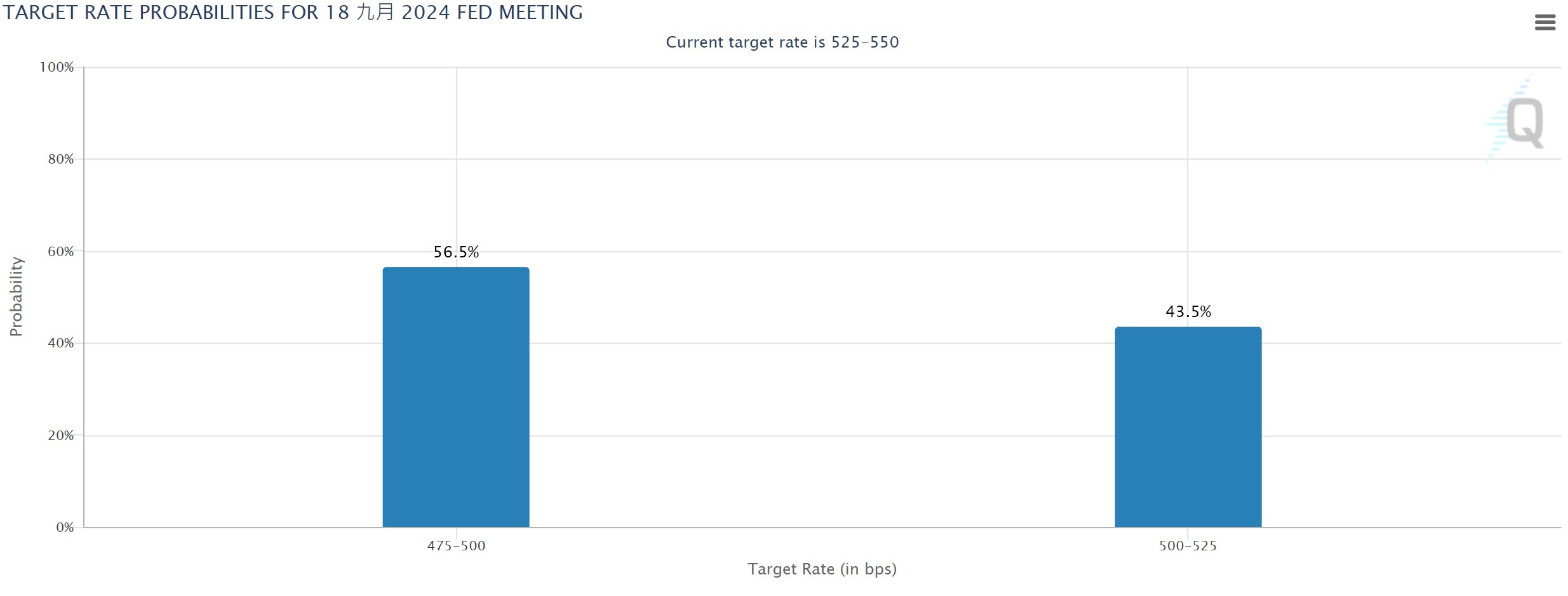 另一方面,市场已经𫔭始消化更激进的联準会降息路径,预期联準会 9 月降息 2 码的机率已达 56.5%。