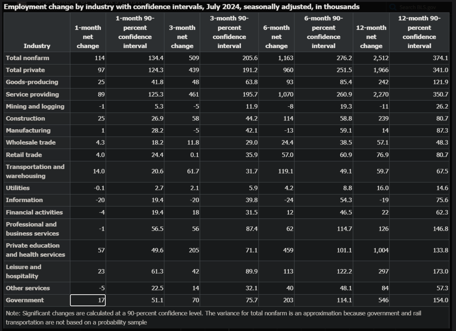 若将减少的初领失业金人数与总领失业金人数加总,与美国劳工统计局发布的 7 月就业变化数据进行比较,可以发现, 这相当于政府机关新聘雇人数的 1.7 万人。