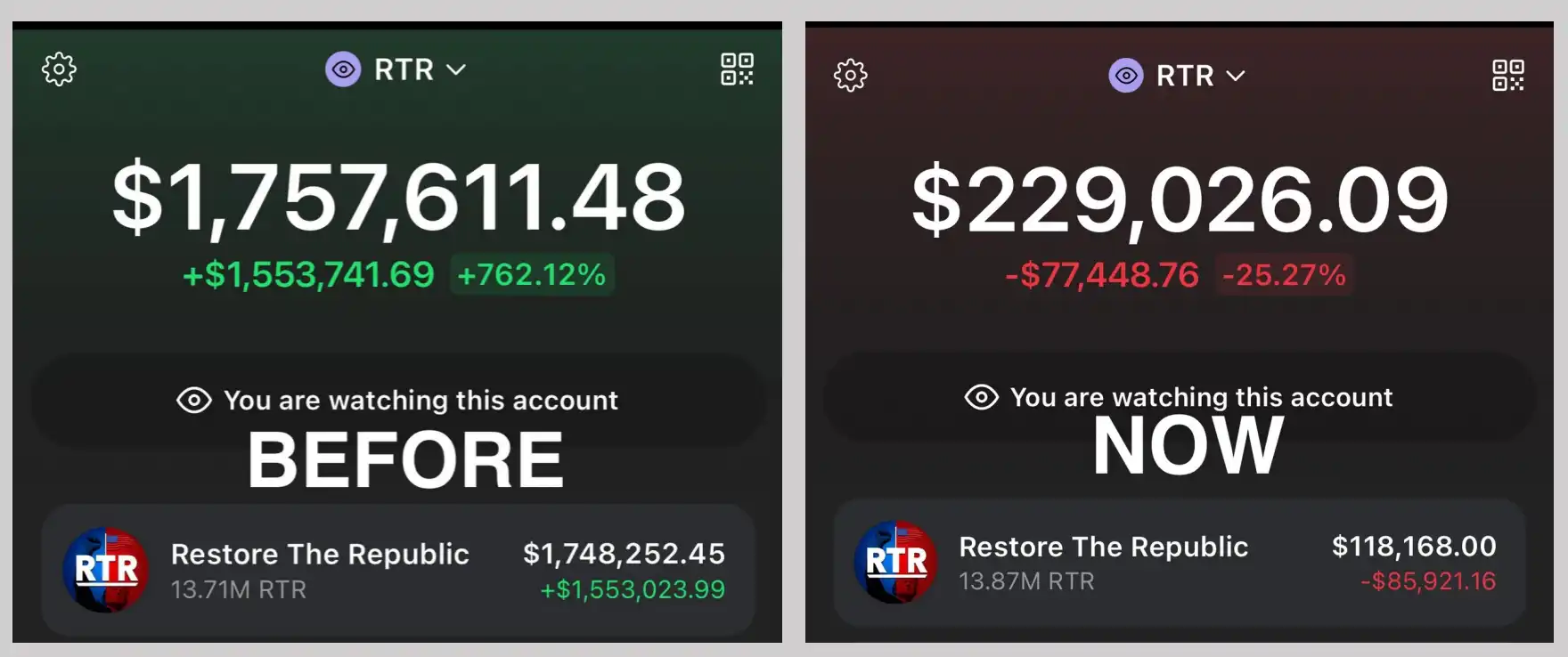 特朗普概念币RTR被「打假」,Meme市场上演「链上大逃杀」