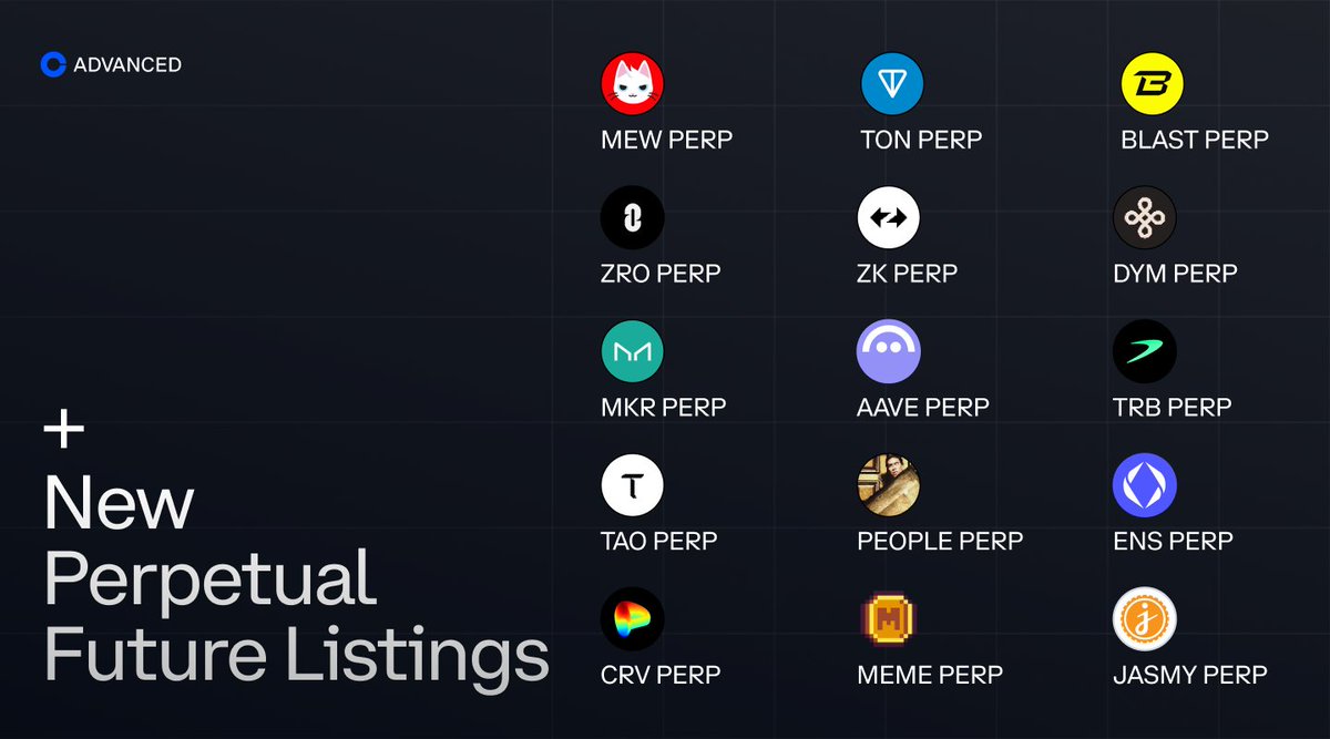 7月Coinbase Advanced新增15个新的永续期货合约,上市合约总数达到70个交易对