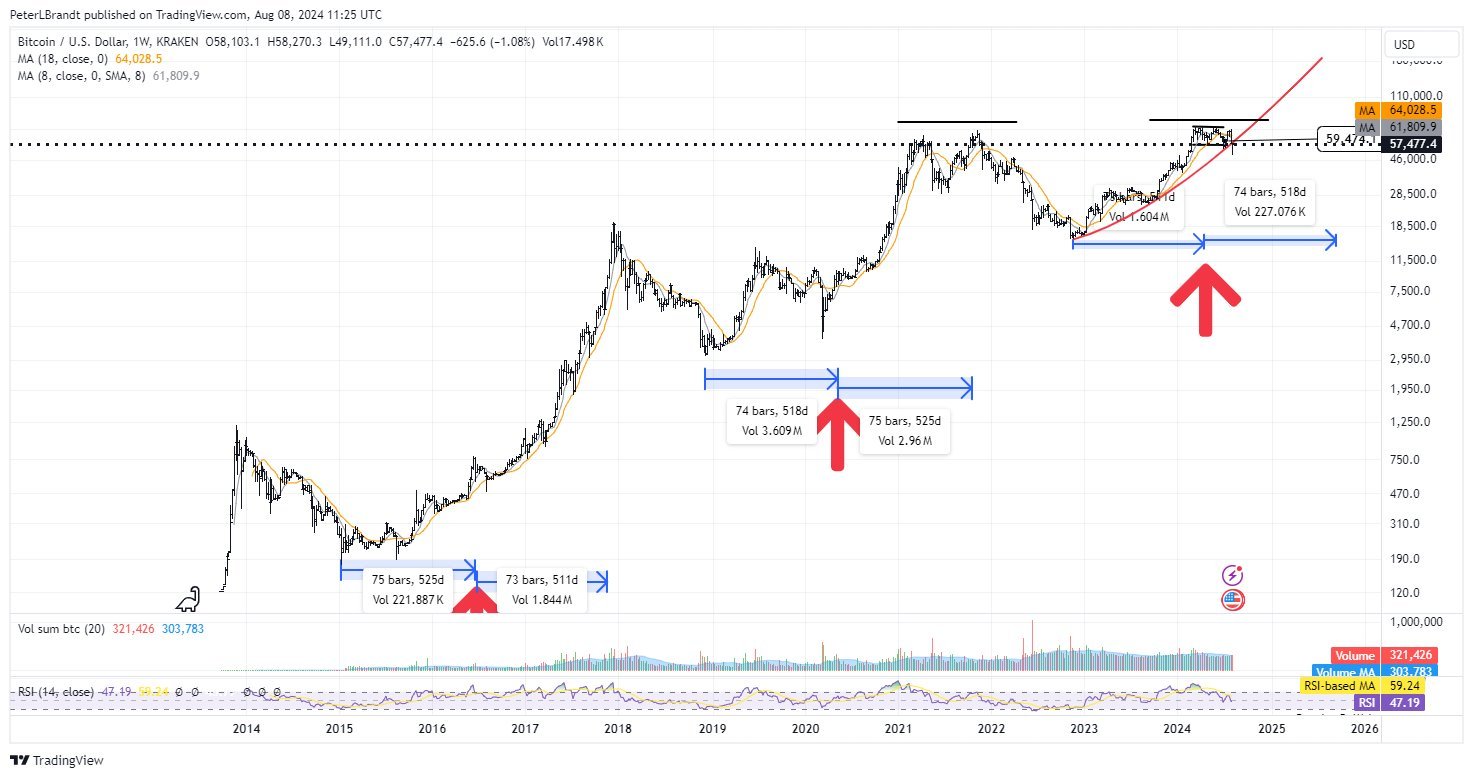 只要比特币保持在 57,500 美元以上,我们将在 9 月 或 10 月迎来新的历史高点。