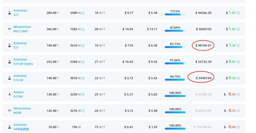 根据 poolin 资料显示,目前比特币主流矿机蚂蚁 S19XP 的关机价在 54507 美元,蚂蚁矿机 T21 则在 48169 美元。对比特币而言,48000—54000 美元实质上形成了一个非常重要的价格支撑区间,特别是比特币跌破 63000 美元之后,投资者应该考虑在这个位置逐步建仓,这几乎是一个不需要过多技术分析和市场分析便可确认的一个逐步抄底区间。