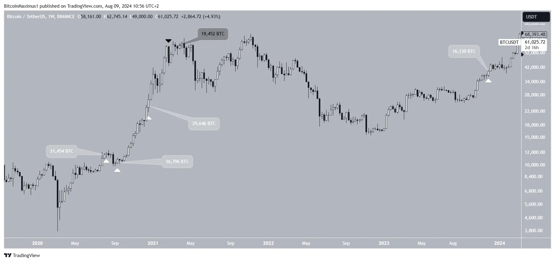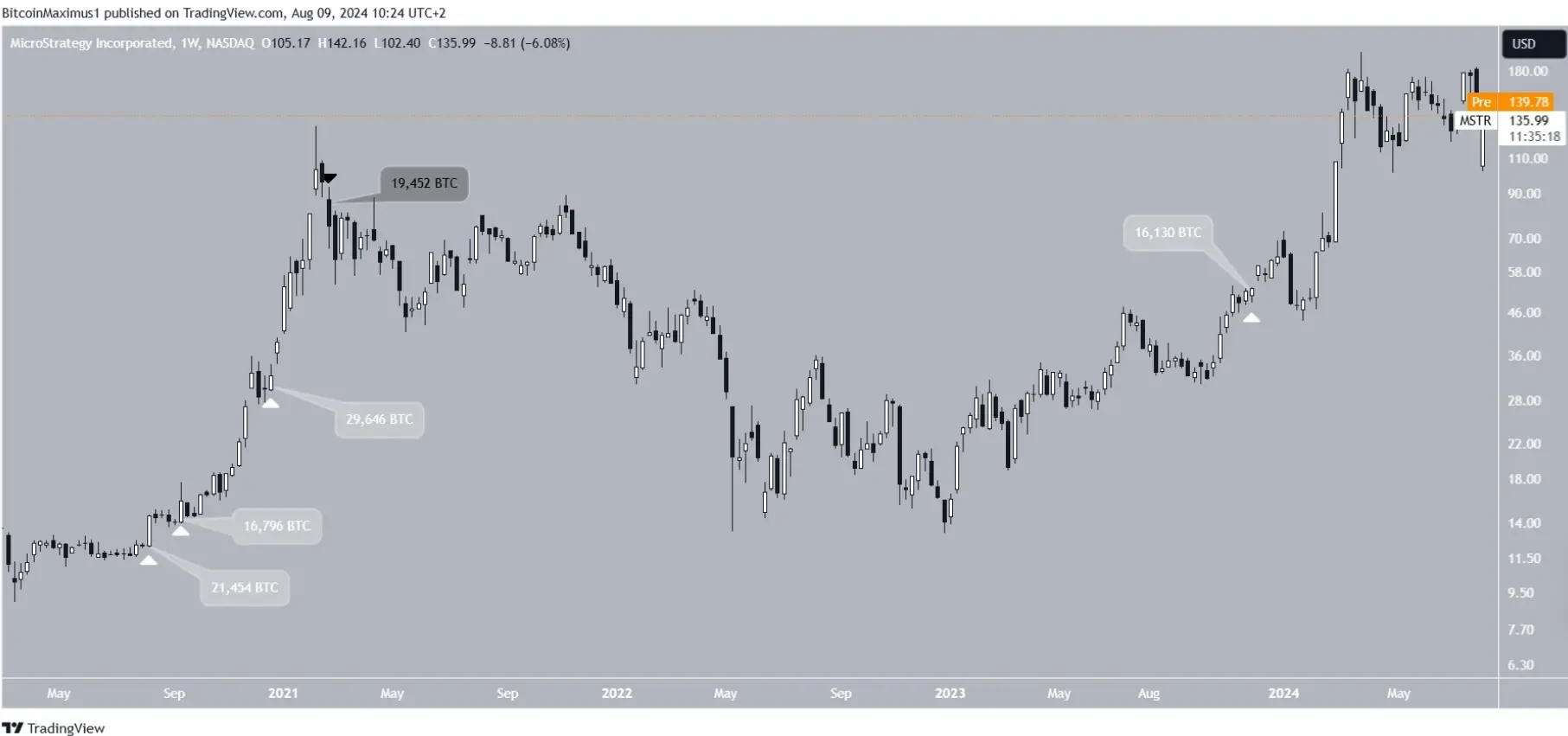 MicroStrategy(MSTR)自 2020 年 8 月起开始购买比特币。