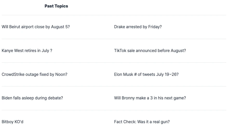 如今加密预测市场的主题与其他平台的主题没有差异。目前流行的主题包括政治(由于选举季节)、加密货币和体育。因此,人们没有太多动力单独使用加密预测市场,因为加密货币交易所和体育博彩网站为这些活动提供了更好的流动性和用户体验。
