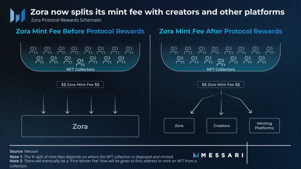 此外,数字资产的可编程性质允许将逻辑直接嵌入到资产中,而不是依赖于控制资产的应用程序,为创新的商业模式和更灵活的资产管理提供了可能性。相对于传统市场,实现对商品所有者或创作者更好的赋权。现如今大部分的 NFT 市场大都嵌套了这样的逻辑,例如 blur 和 zora 所做的在 NFT 中嵌入版税逻辑,实现创作者在每次二次销售中的持续收入流,这在传统艺术市场中是难以实现的。